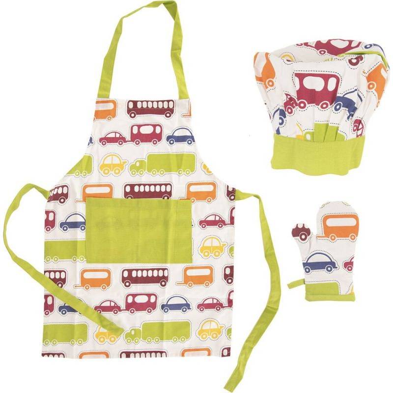Orion Zástěra dětská + chňapka + čepice Auta a autobusy
